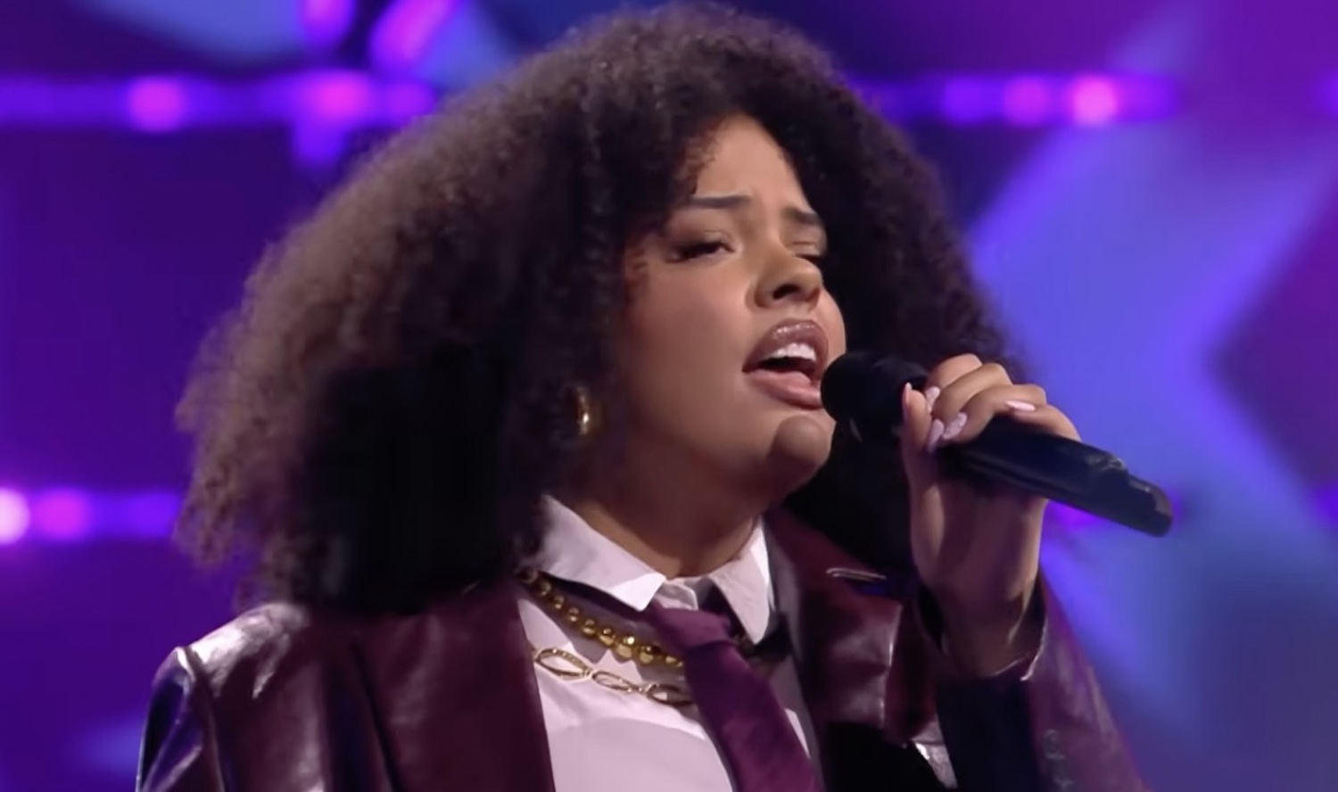 Haar performance was breekbaar en klein gehouden, juist daardoor kwam het keihard binnen. Geen grote uithalen om indruk te maken, maar een stem die precies genoeg vertelde. Je zag coaches en publiek meeademen, alsof iedereen even dezelfde emotie droeg.
