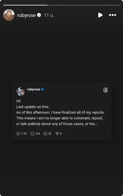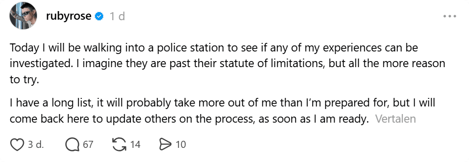Daarnaast wordt gesteld dat Ruby Rose vaker mensen vals zou hebben beschuldigd. Daarmee verschuift de reactie naar de geloofwaardigheid van de aanklager, iets wat in dit soort zaken vaker gebeurt, maar wat ook meteen veel discussie oproept online.